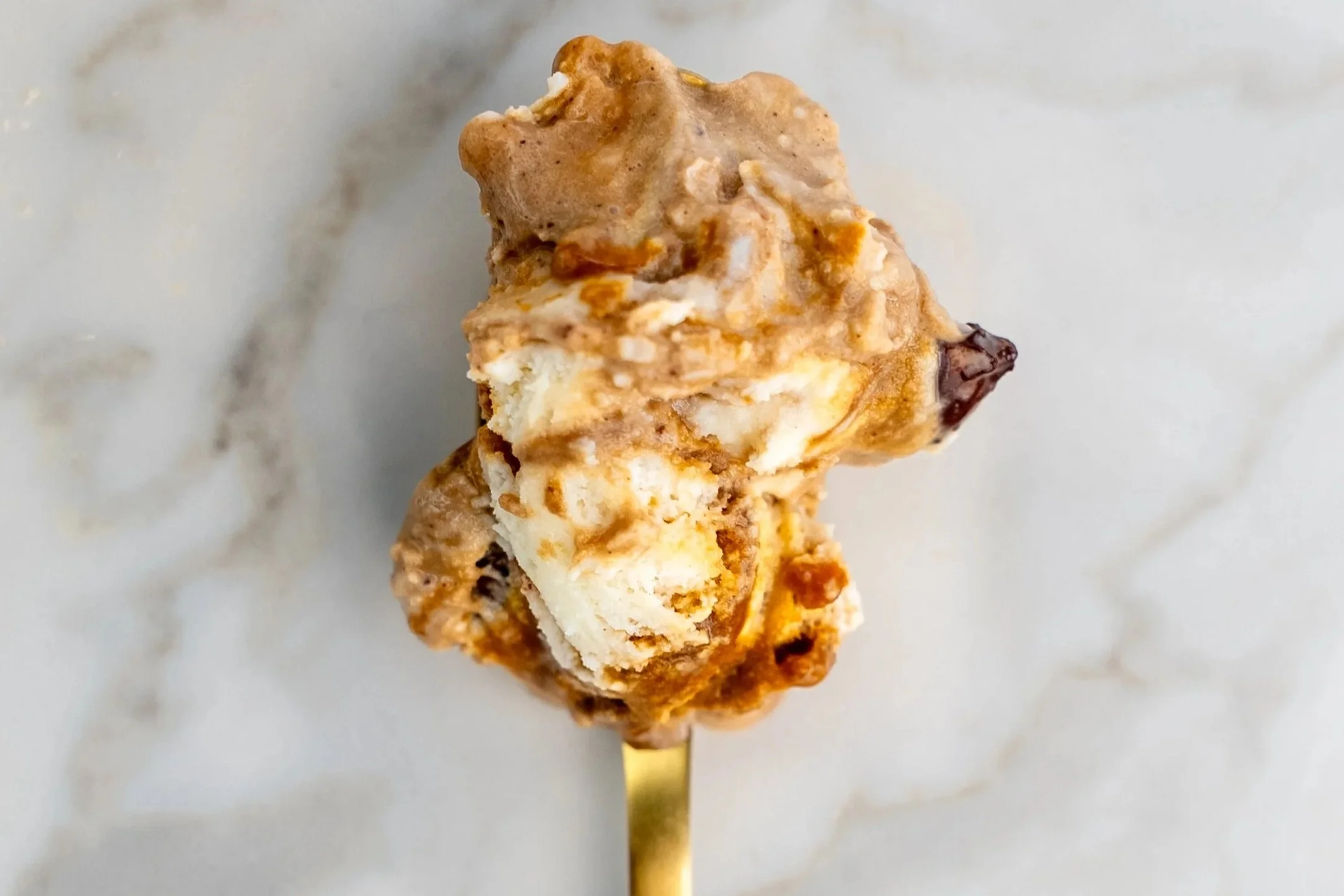 Peanut butter ice cream with roasted bananas and fluff swirl (E,N)